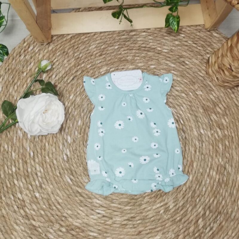 Pelele de tirantes con estampado de florecillas en verde agua.