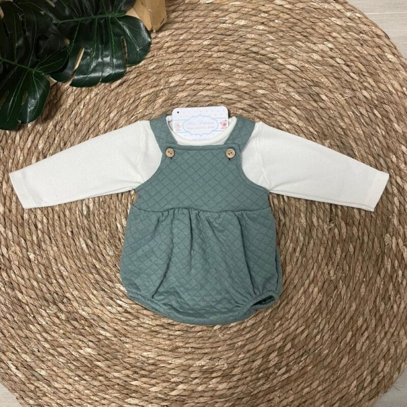 Conjunto de peto y jersey en tonos verde y marfil