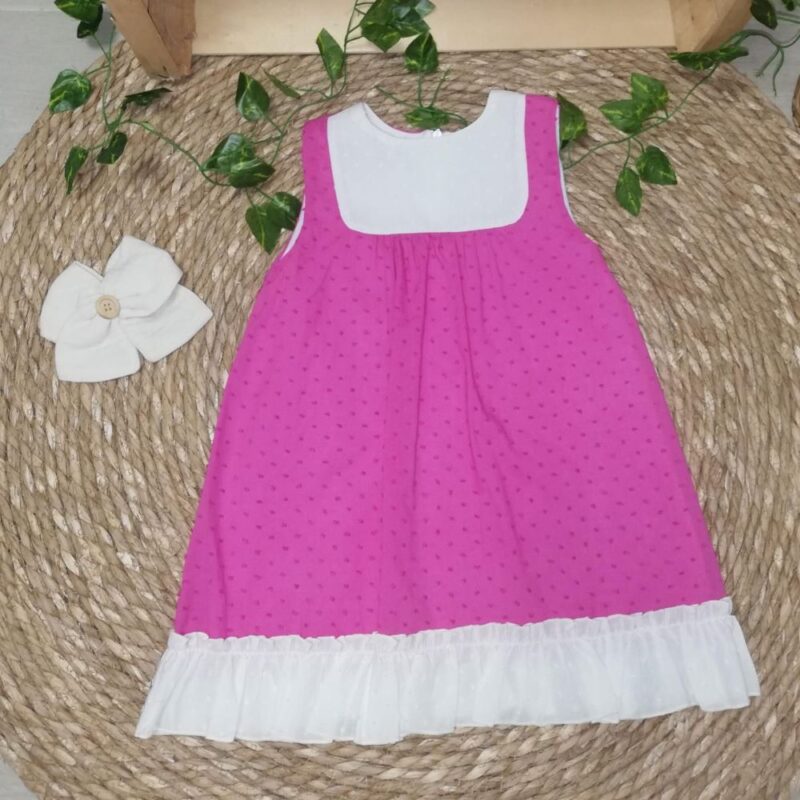 Vestido de plumeti en tonos fucsia y blanco